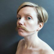 Unshaven… Again is a collection of self portraits printed on handmade paper and then adorned with the artist’s collected hair and dried flowers. The delicate paper along with dried flowers speaks to female sexuality and society’s notion of the fragility of women as a gender. The human hair is representative of Western culture’s criteria for traditional feminine beauty and its desire to keep women in a state of innocence.